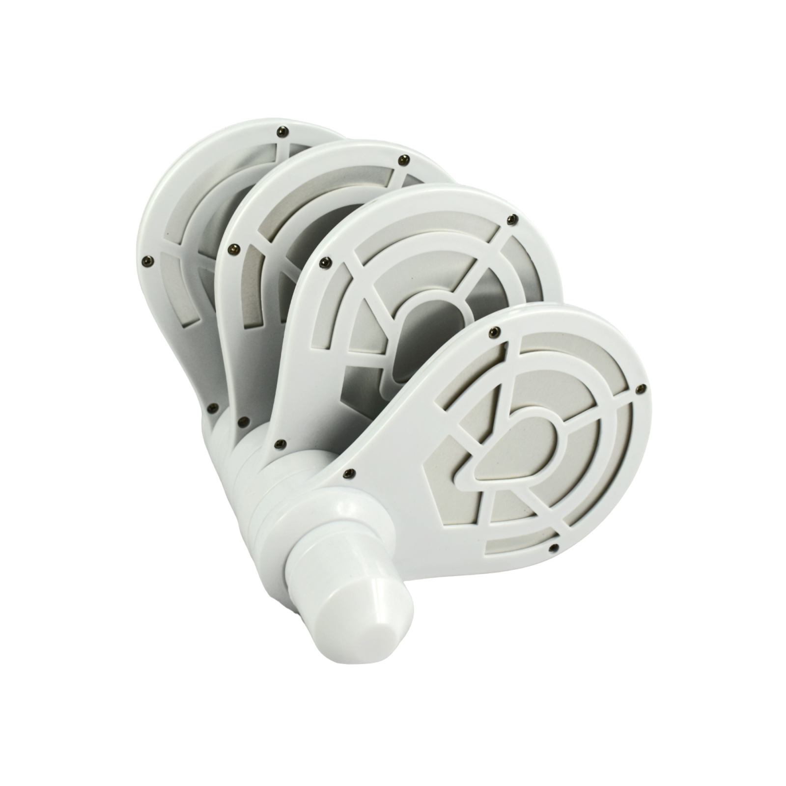 Cele 4 brate mobile pe pot plia total spre soclu, sau se pot extinde, formand un fel de floare cu petale.