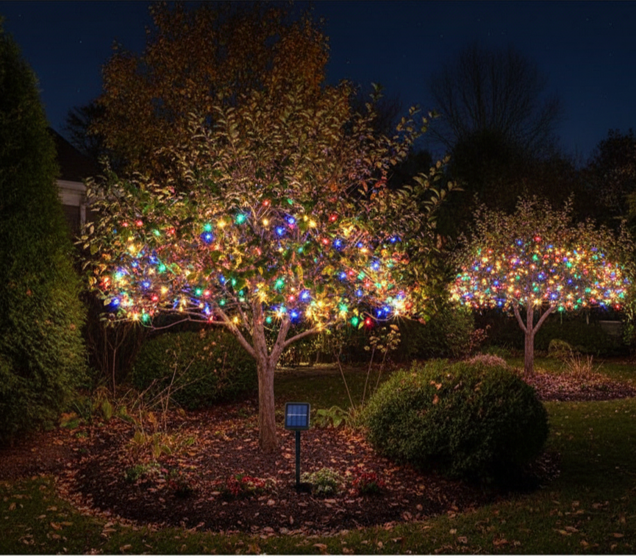 Instalația solară colorată cu 300 LED-uri este soluția ideală pentru decorarea grădinii, balconului, terasei sau aleilor, fără consum de energie și fără cabluri suplimentare. Funcționează 100% pe bază de energie solară, având un panou fotovoltaic inclus și un acumulator ce permite funcționarea automată pe timpul nopții.